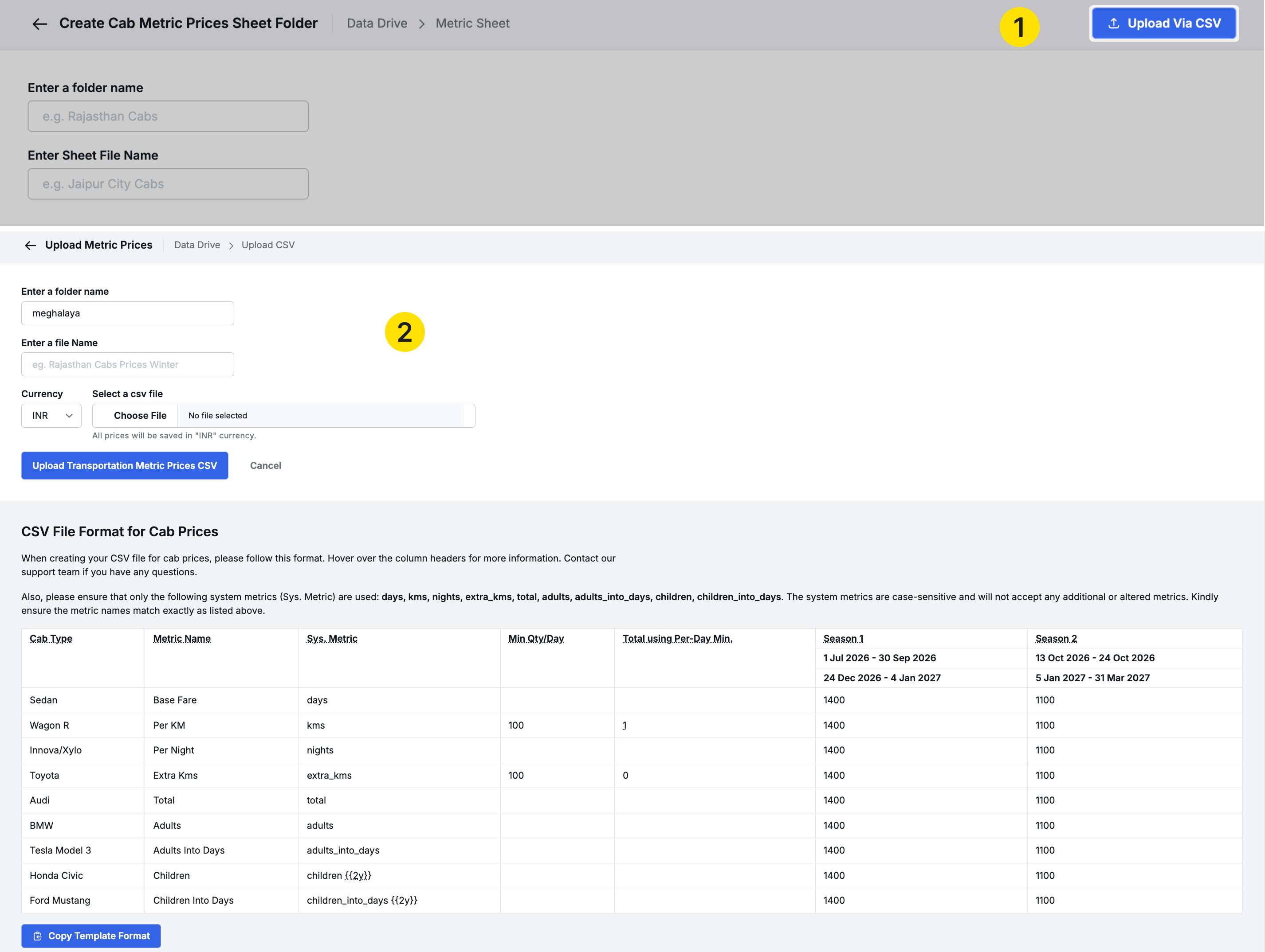 This update enhances the Trip Sales Report with custom column presets and multi-month download capabilities, expands custom date downloads across all sales reports, and adds manual controls for transport service closing dates. We’ve also introduced a comprehensive sheet management system for cab metric pricing, allowing you to create, manage, and upload pricing sheets directly in the system or via CSV. Several workflow improvements and bug fixes are also included.