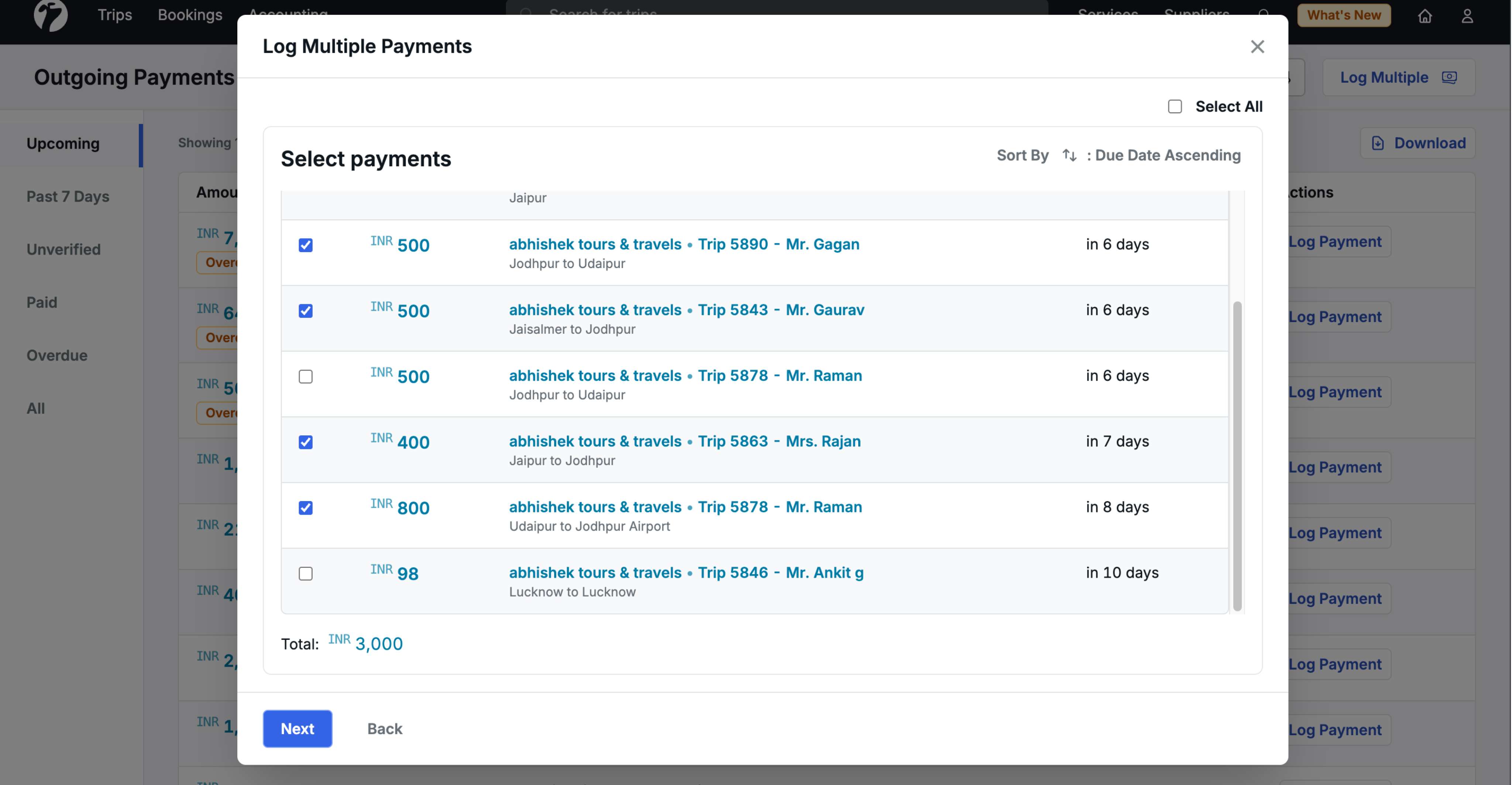 We have introduced a Bulk Payment Clearance feature that allows you to log multiple payments in a single transaction, significantly reducing the time and effort required to process payments for suppliers and hotels.
