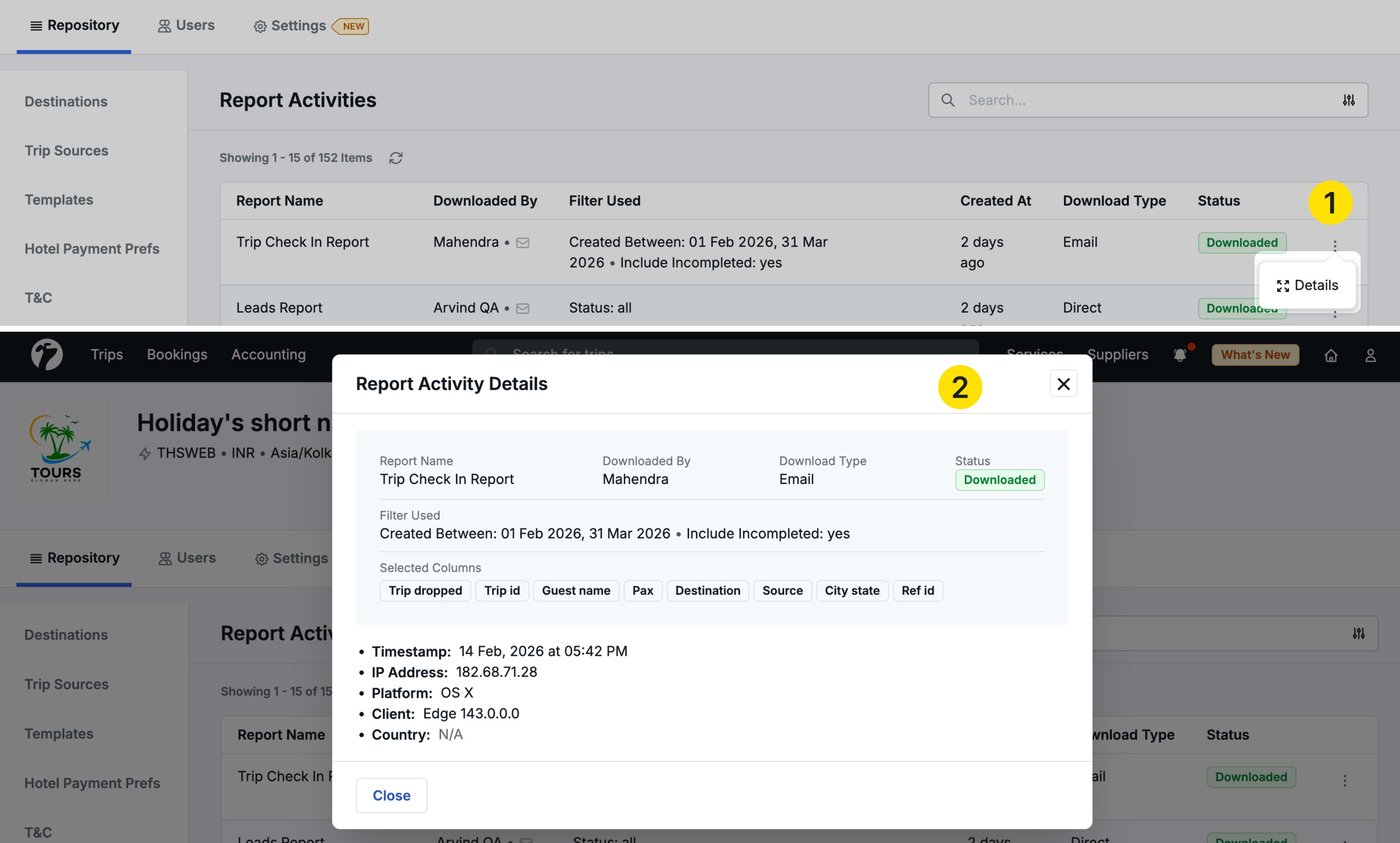 - Trip Source City and Email in Trip Lead Report: Trip Lead Report now includes the trip source city and email fields for better lead tracking and communication